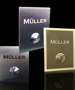 Es rankt sich ein sich nach unten verbreiterndes Band um die elliptische Gravurfläche der Klingelplatte.